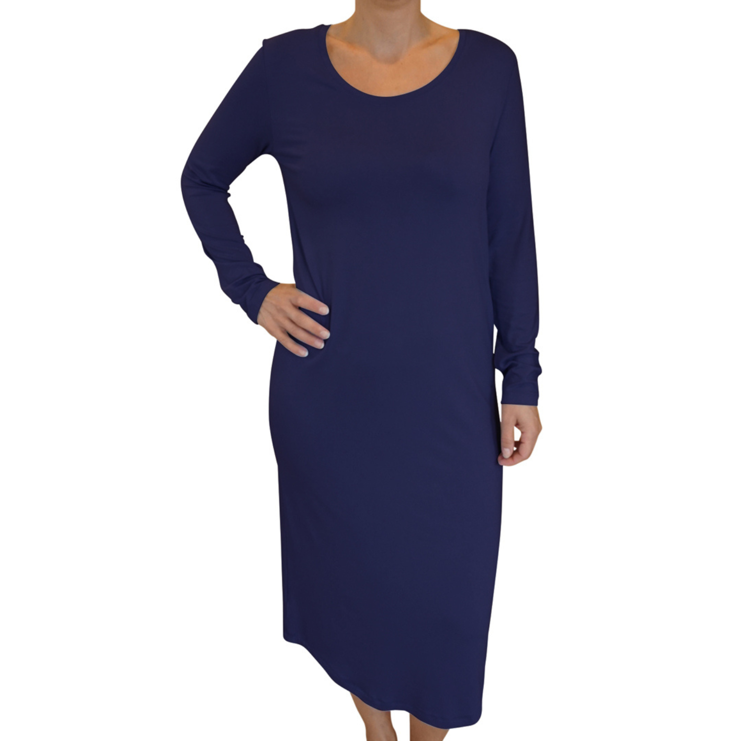 Dame Lang Natkjole med langt ærme Mørkeblå str. XS - 3XL - fra CareTakes